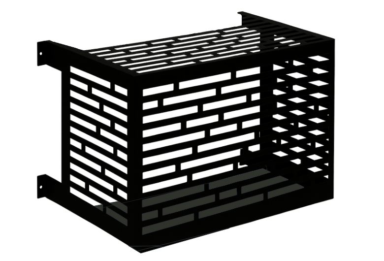 Protetor de ar-condicionado H-BRICK split preto em ACM da Mettalic Service. Estrutura resistente, leve e de fácil montagem, ideal para condensadoras de 9000 a 12000 BTUs. Design moderno e proteção contra ferrugem.